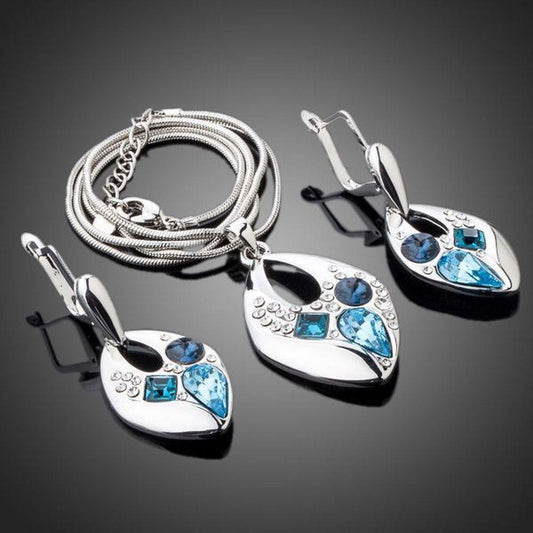 Blue Crystal Clip Earrings and Necklace Set