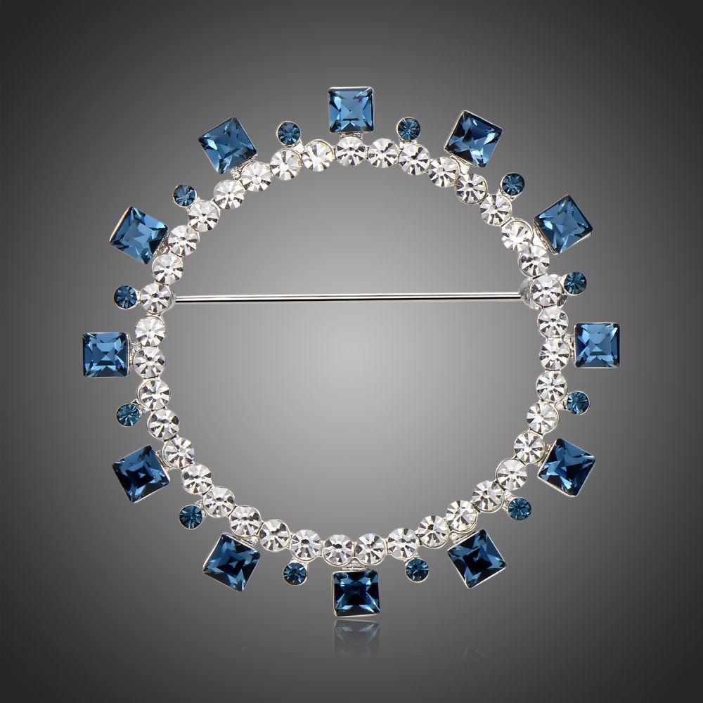 Blue Square Austrian Crystals Geometric Brooch -KFJB0108