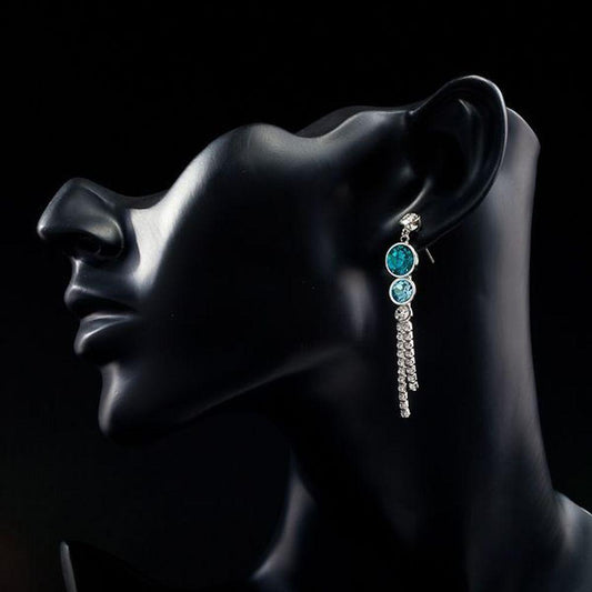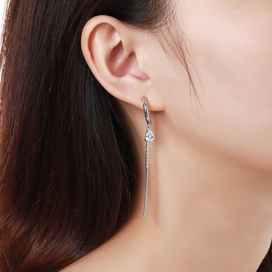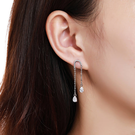 Cubic Zirconia Long Chain Drop Earrings -KPE0371