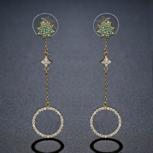 Golden Round Cubic Zirconia Drop Earrings -KPE0048