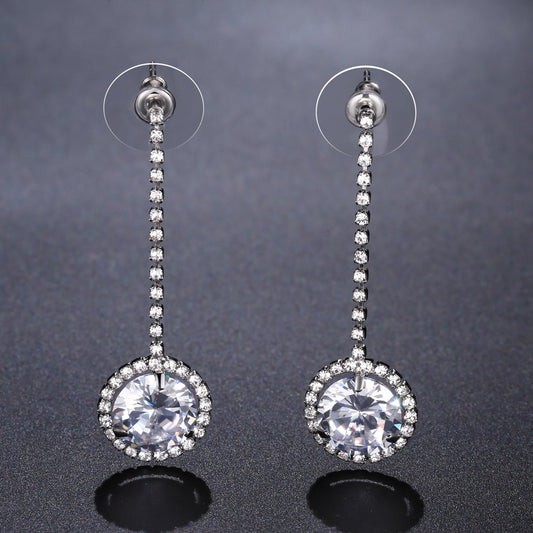 Round AAA Cubic Zirconia Drop Earrings -KPE0338