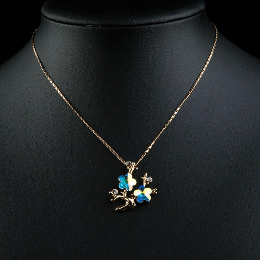 Micro Pave AAA Round Cut Blue Cubic Zirconia Sunflower Necklace -KFJN0291