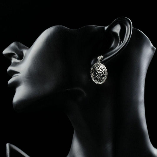 Hollow Flowers Crystal Drop Earrings -KPE0281