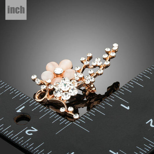 Cat's Eye Stone Plant Flower Brooch