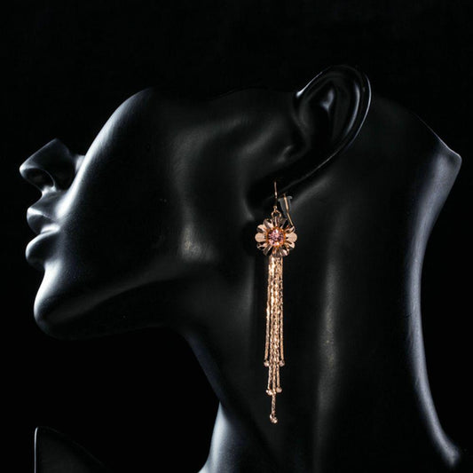 Tassel Rose Gold Stellux Austrian Drop Earrings -KPE0214