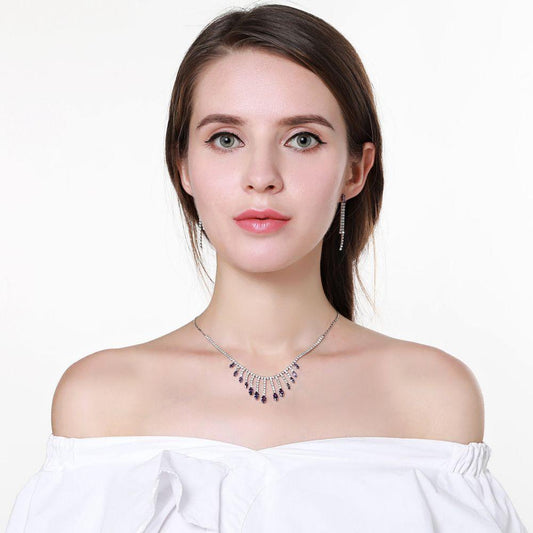 Purple Cubic Zirconia Water Drop Earrings and Necklace Jewelry Set