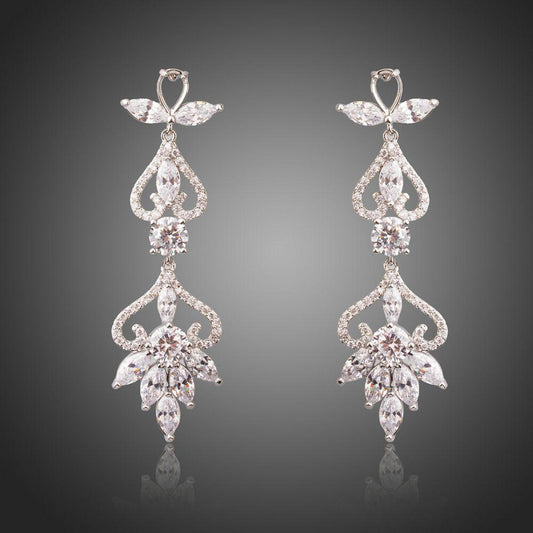 Flower Shape Crystal Drop Earrings -KPE0286