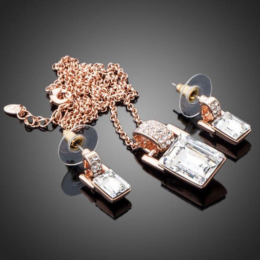 Rectangle Crystal Necklace & Earrings Set