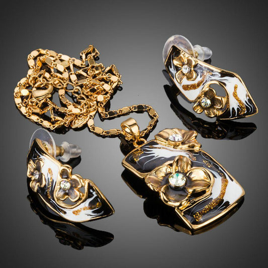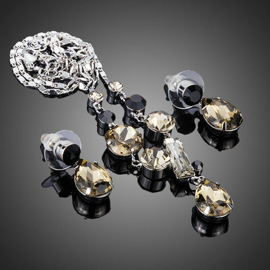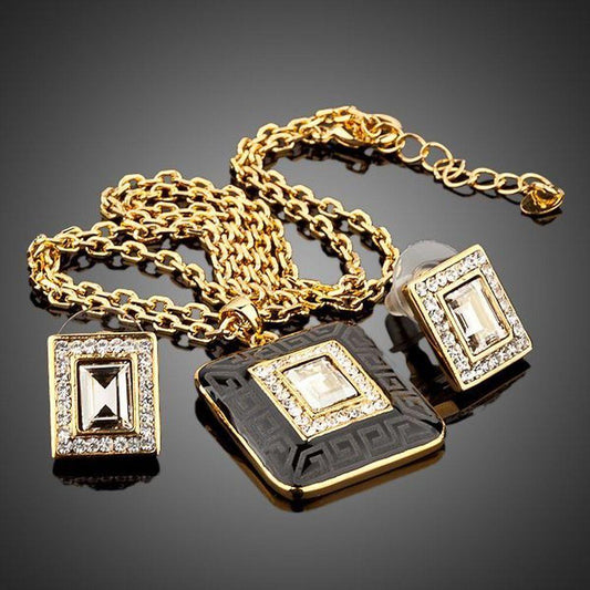 Black Australian Crystal Pendant Necklace Set