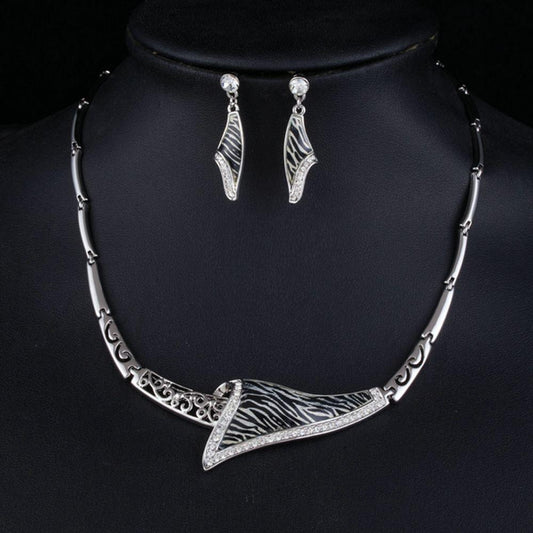 Zebra Drop Earrings & Pendant Necklace Set