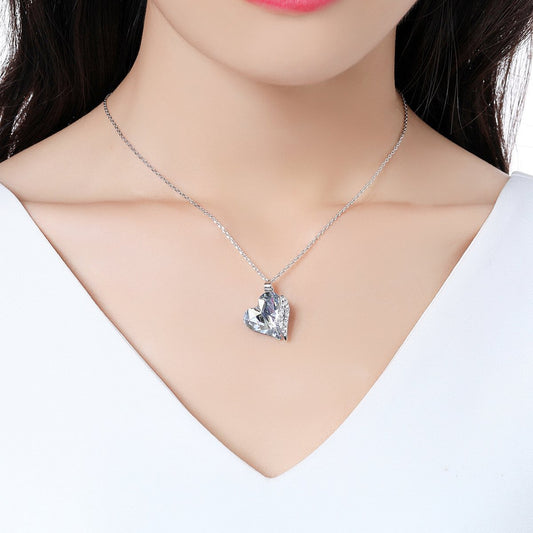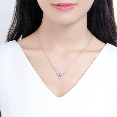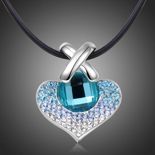 Big Heart Pendant Necklace For Wedding Blue Austrian Crystals Silver Color Fashion Jewelry