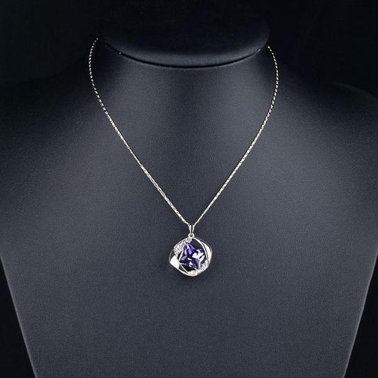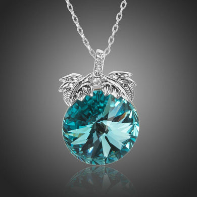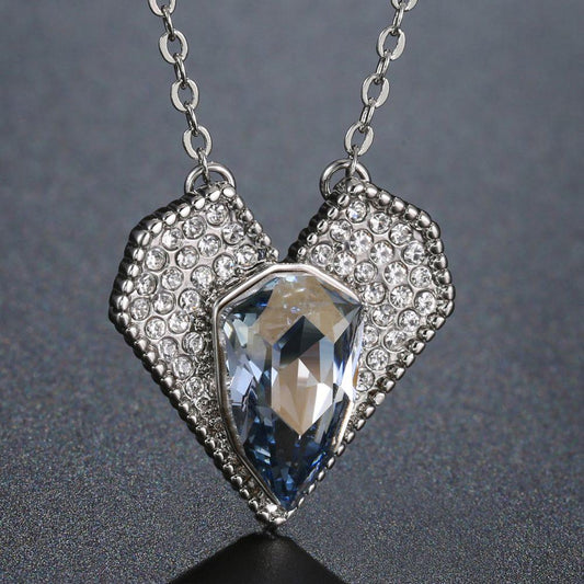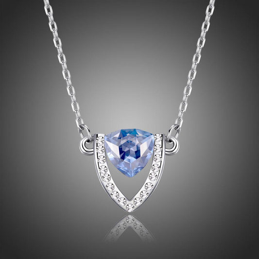Blue Austrian Crystal Stone Shield Design Pendant Necklace for Women