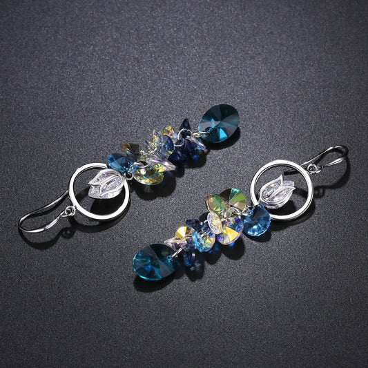 Blue Austrian Crystals Drop Earrings -KPE0308