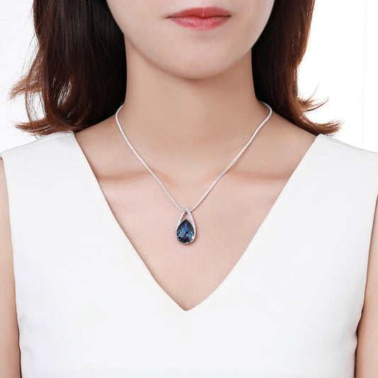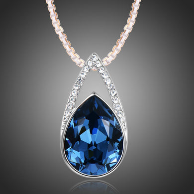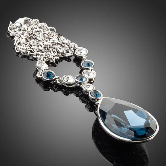 Blue Tear Drop Stellux Austrian Crystal Necklace KPN0104