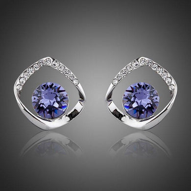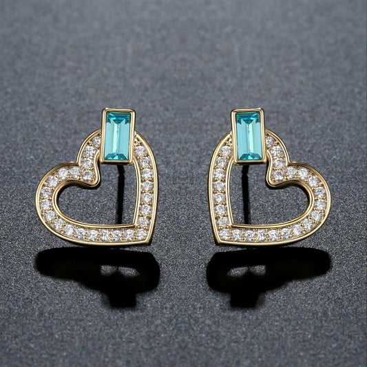 Heart Blue Austrian Crystals Stud Earrings -KPE0385