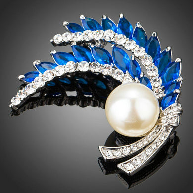 Pearl Fashion Blue CZ Flower Stud Earrings and Necklace Set