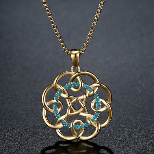 Micro Pave AAA Round Cut Blue Cubic Zirconia Sunflower Necklace -KFJN0291