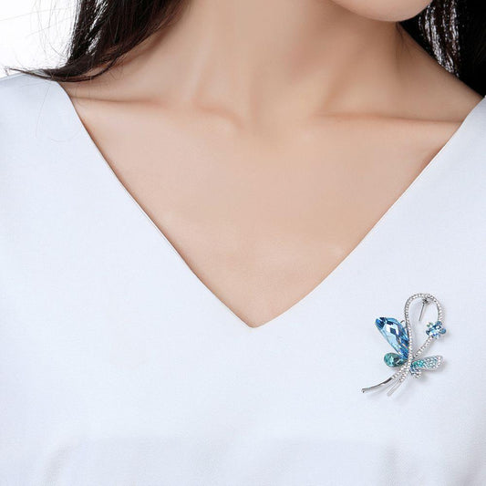 Double Leaf Blue Austrian Crystals Brooch Pin
