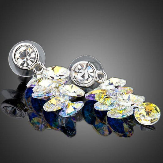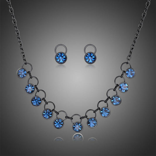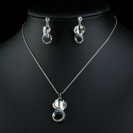 White Gold Color Big Blue Crystal with Necklaces & Earring Jewelry Set