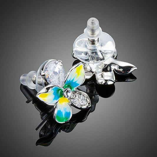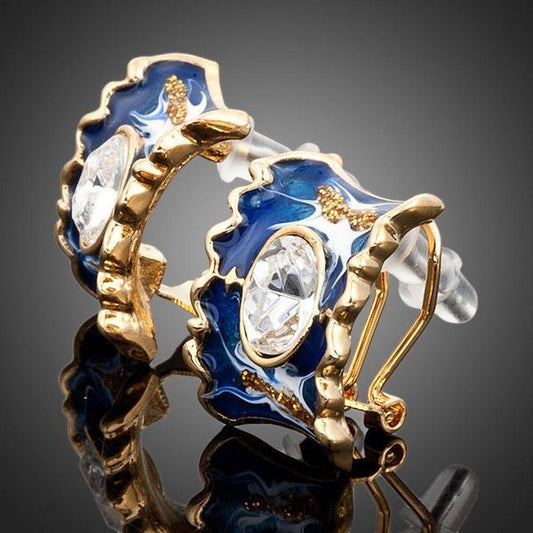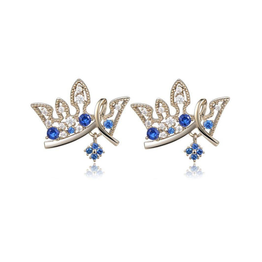 Paved Blue Cubic Zirconia Crown Stud Earrings -KFJE0419