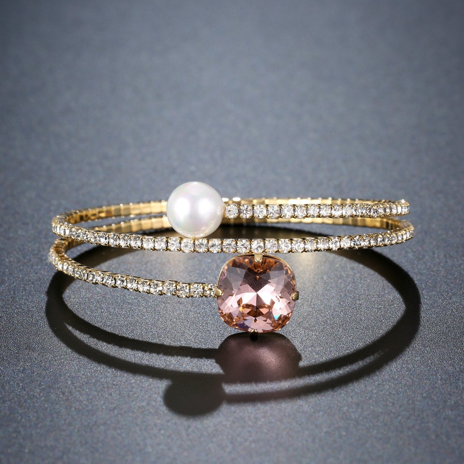 Cubic Zirconia Pearl Chain Bracelet -KBQ0108