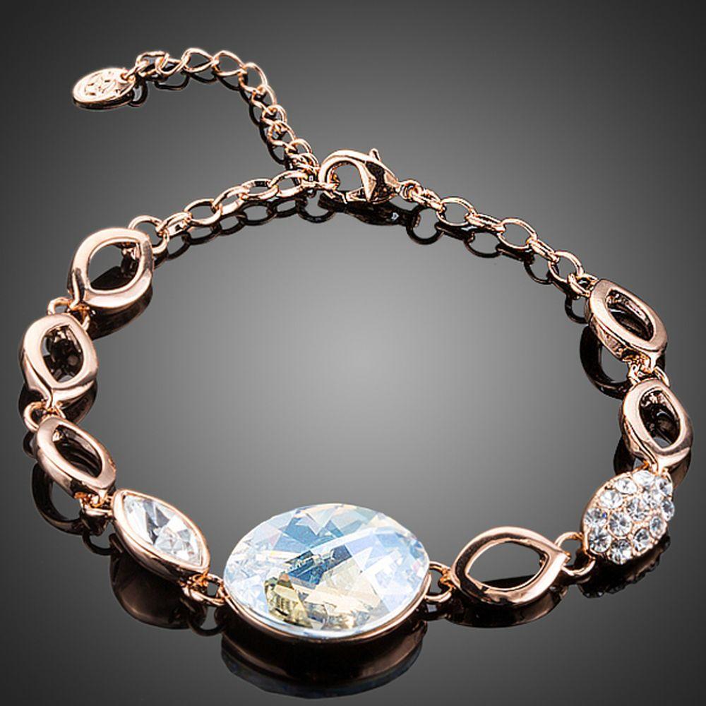A rose gold plated bracelet for our rosy ladies! This gorgeous water drop shaped fashionable bracelet uses Stellux Austrian Crystals as main stone with Rhinestone materials. The main structure of Copper looks with rose gold plating. Using these materials made the bracelet very light weighing only 8.6 g with 17 cm long chain extended to 3 cm long.