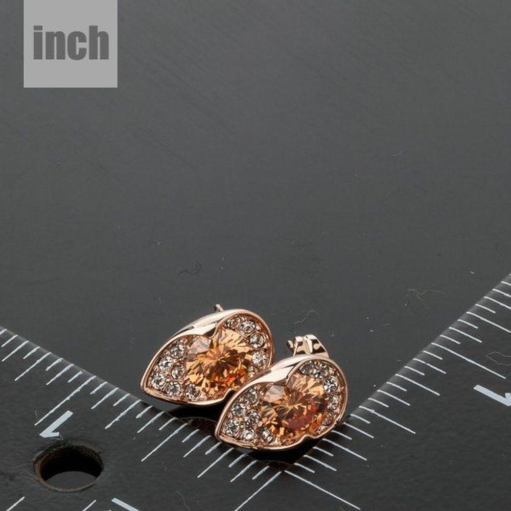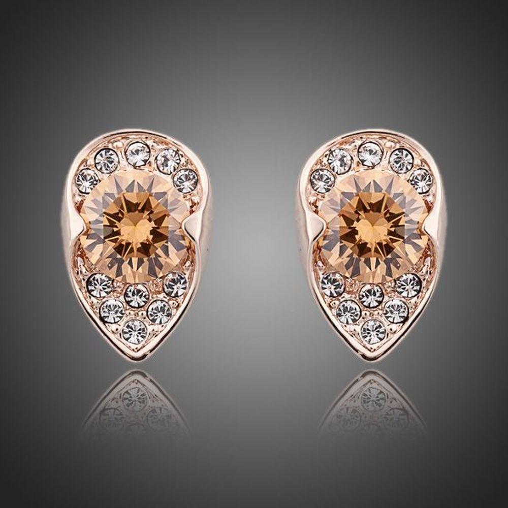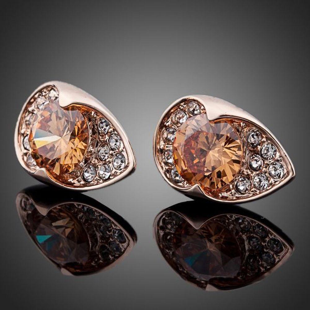 With an amazing and exclusive design, the rose gold plated unique design champagne cubic Zirconia stud earring is an attractive choice. This charming and compact earring is all you want in a grand event. This earring looks shiny due to its rose gold plating.