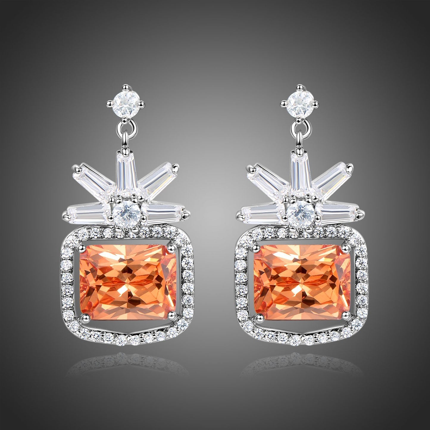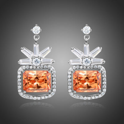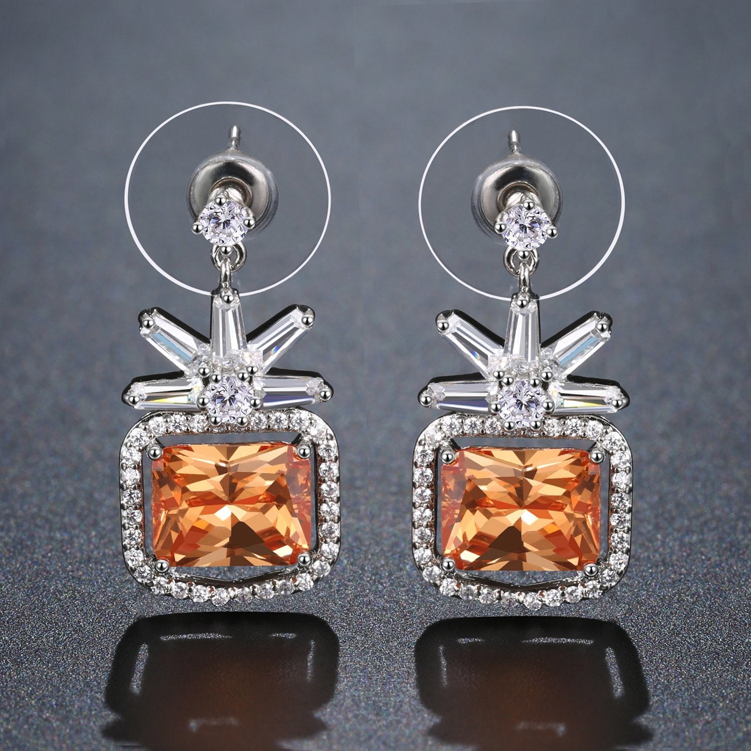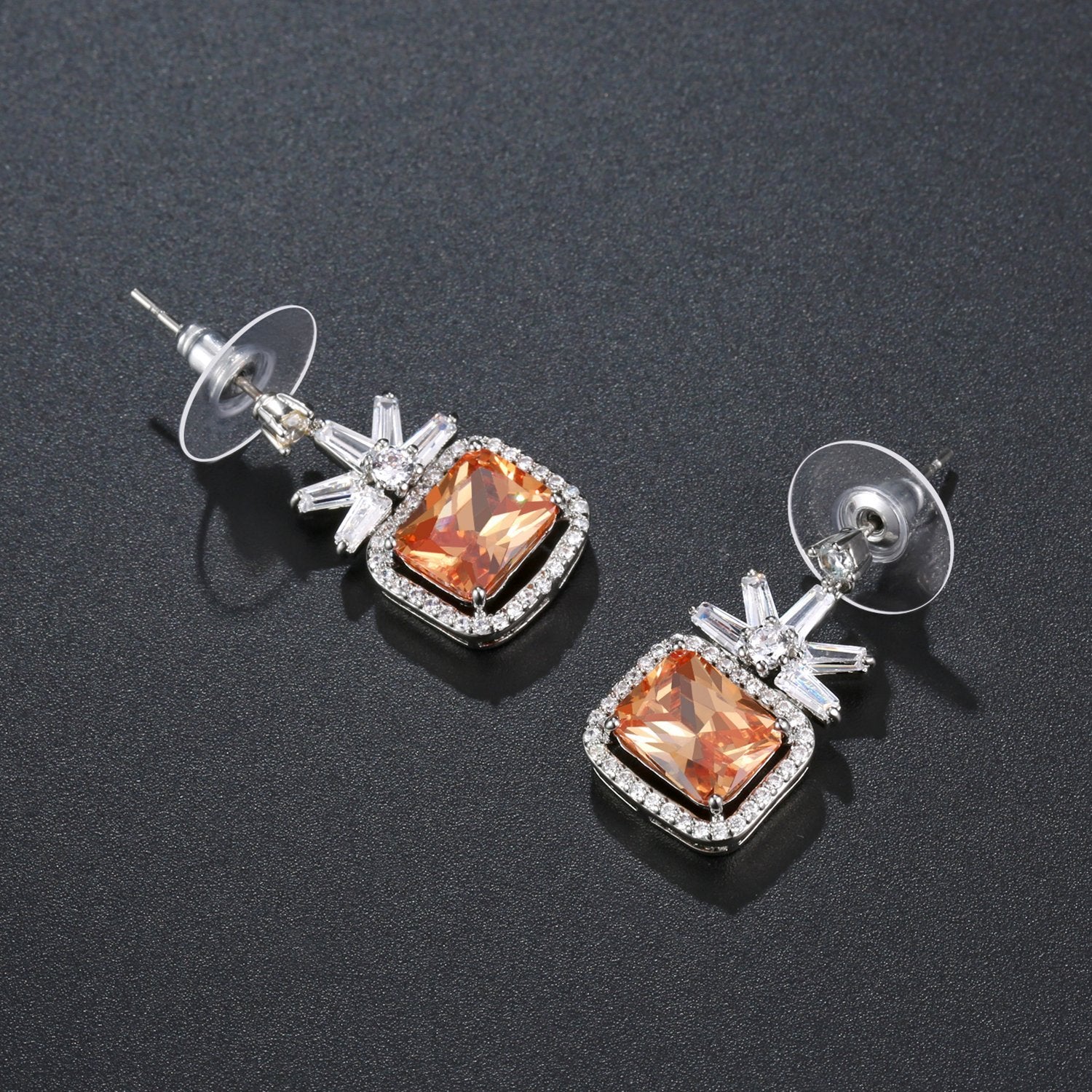 Rectangle Cut Champagne Drop Earrings -KPE0358