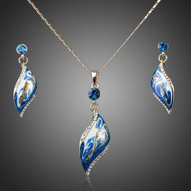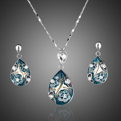 Sea Blue Flower Stud Earrings and Pendant Necklace Set