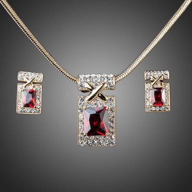 Gold Plated Red Crystals Waterdrop Jewelry Set