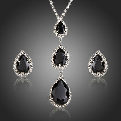 Dark Blue Sapphire Cubic Zirconia Necklace + Earrings Set