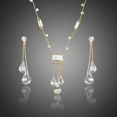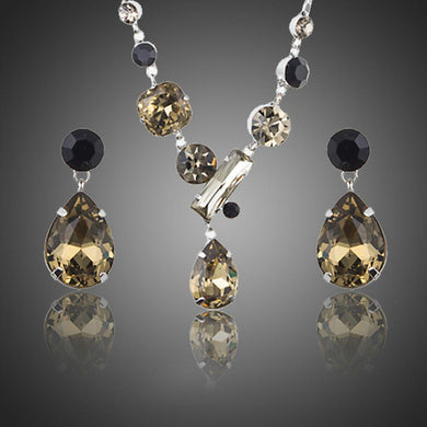 Limited Edition Multi color Crystal Water Drop Necklace + Earring Set