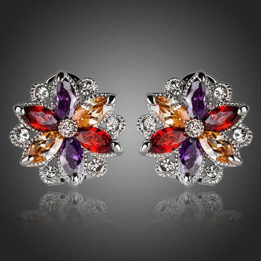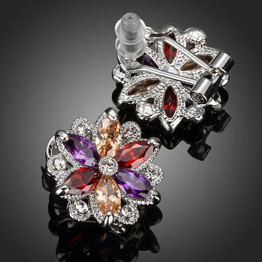 Flower Star Shape Cubic Zirconia Drop Earrings