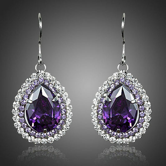 Purple Cubic Zirconia Pear Shaped Stud Earrings