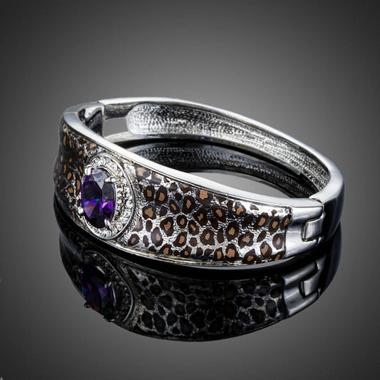 Purple Cubic Zirconia Leopard Print Bangle