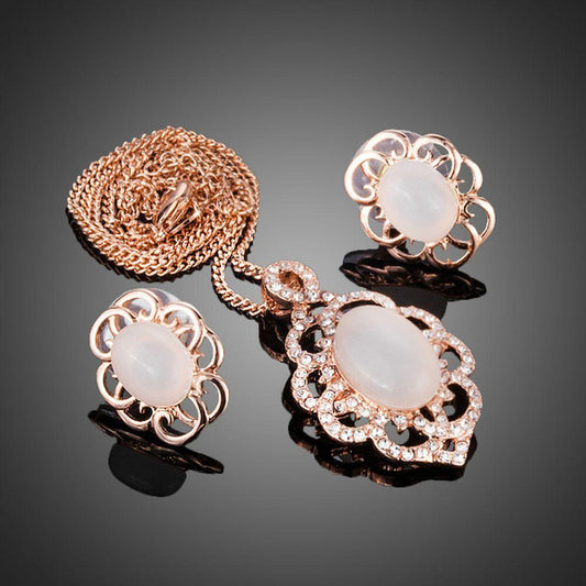 Opal Egg Shaped Stud Earrings + Pendant Necklace Set
