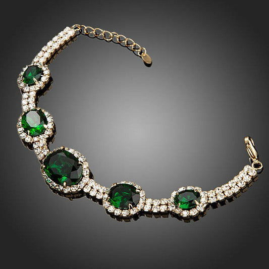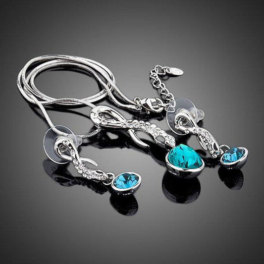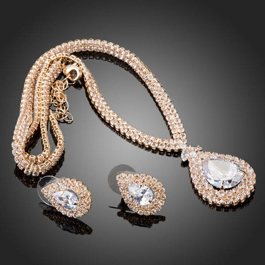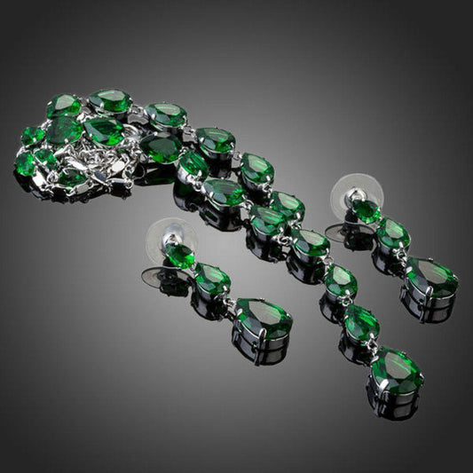 Green Cubic Zirconia Tear Drop Pendant Necklace and Earrings Set