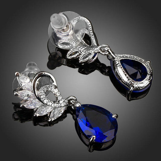 Royal Blue Cubic Zirconia Drop Earrings -MJE0127