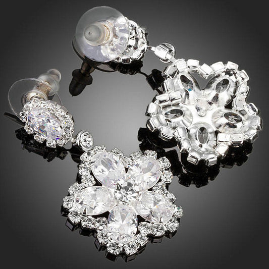 Flower Star Shape Cubic Zirconia Drop Earrings