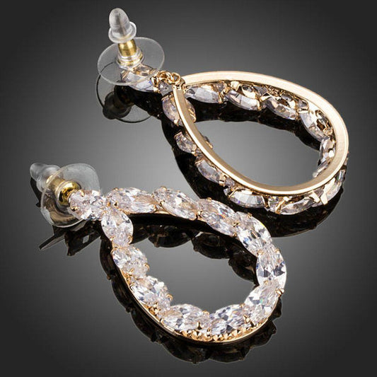 Golden Cubic Zirconia Drop Earrings