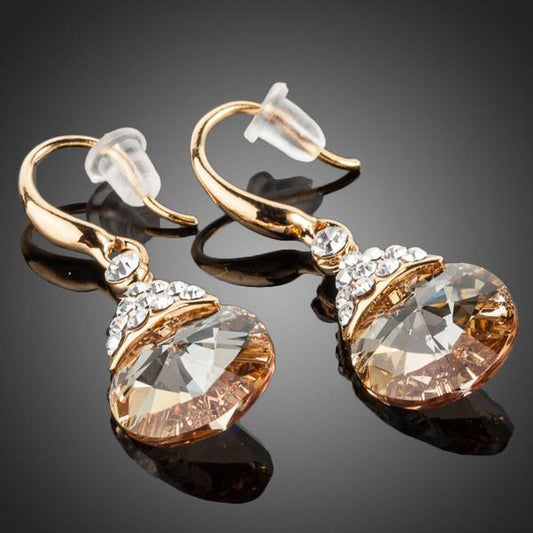 Gold Plated Raindrop Crystal Drop Earrings