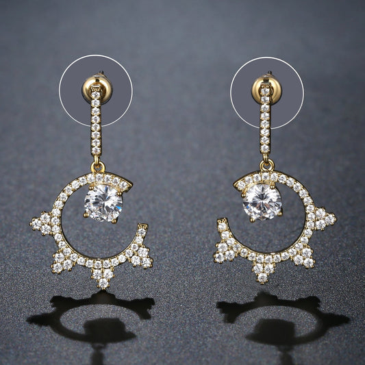 Irregular Gold Cubic Zirconia Drop Earrings -KPE0047