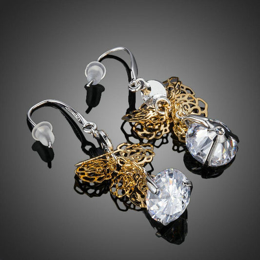 Sunflower Design Crystal Drop Earrings