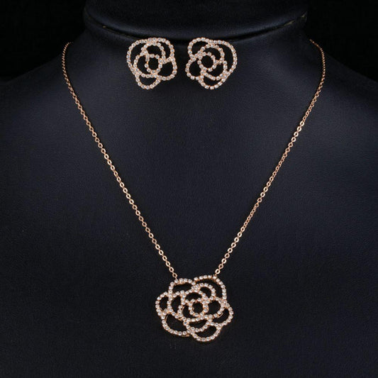 AAA CZ Flower Stud Earrings and Pendant Necklace Set