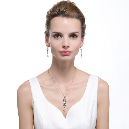 Clear Austrian Crystals Long Drop Earrings and Necklace Set