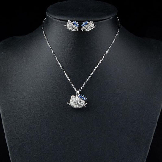 Lovely Cat White Gold Color Stellux Austrian Crystals Jewelry Set