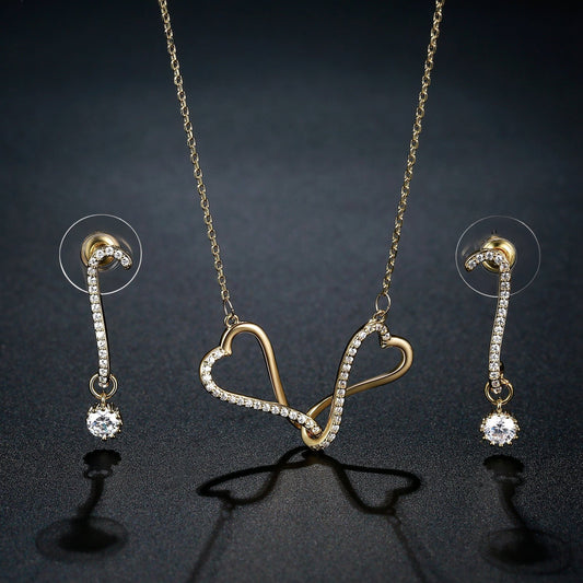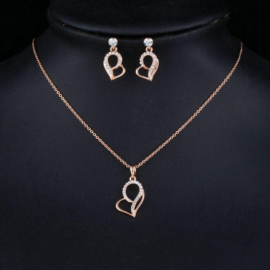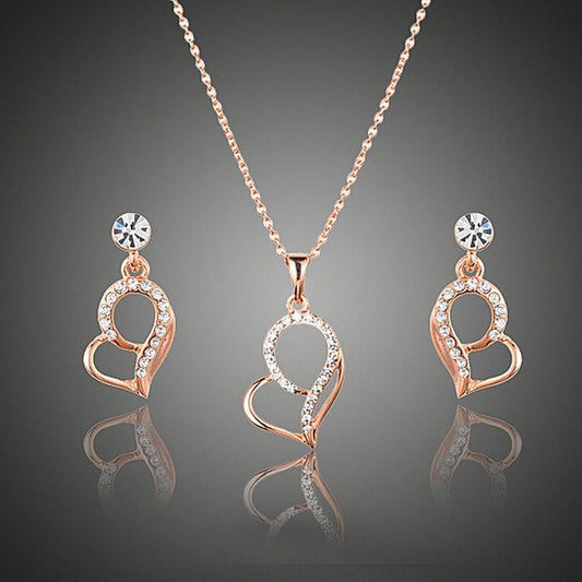 Lover's Heart Shape Rose Gold Color Stellux Austrian Crystal Jewelry Set