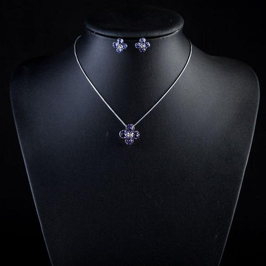 White Gold Color Purple Stellux Austrian Crystal Flower Stud Earrings Necklace Jewelry Set