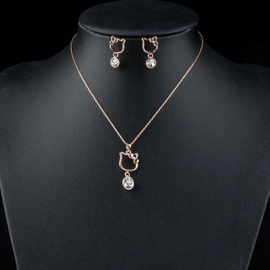 Cat Rose Gold Color Clear Stellux Austrian Crystal Drop Earrings and Necklace Set