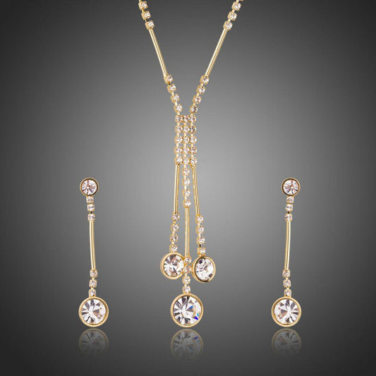 White Gold Stellux Drop Earrings and Water Drop Cubic Zirconia Necklace Set
